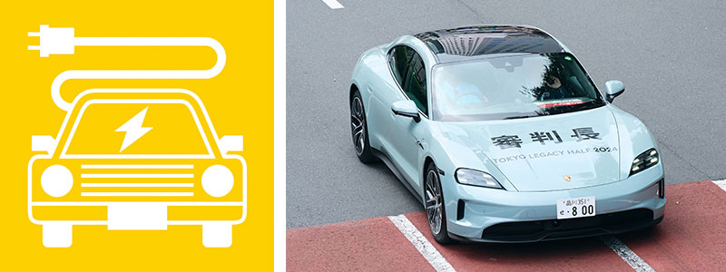 ■ 大会にて使用する随行車両の一部に電気自動車を採用
