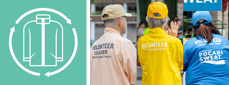 大会を通した廃棄物の削減に向けて、アスリートビブスセットの「安全ピン」封入の取りやめの他、ボランティア及び審判員のウェアはリユースを促進します。また、段ボールなど再生可能な資源は回収しリサイクルを行います。