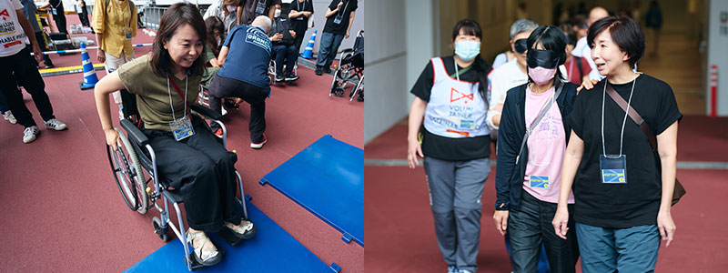 車いす体験・アイマスクを使った視覚障がい者疑似体験・心のバリアフリーをテーマとした講習を通して、「障がい」について理解を深めていただくことができるプログラムを実施します。
