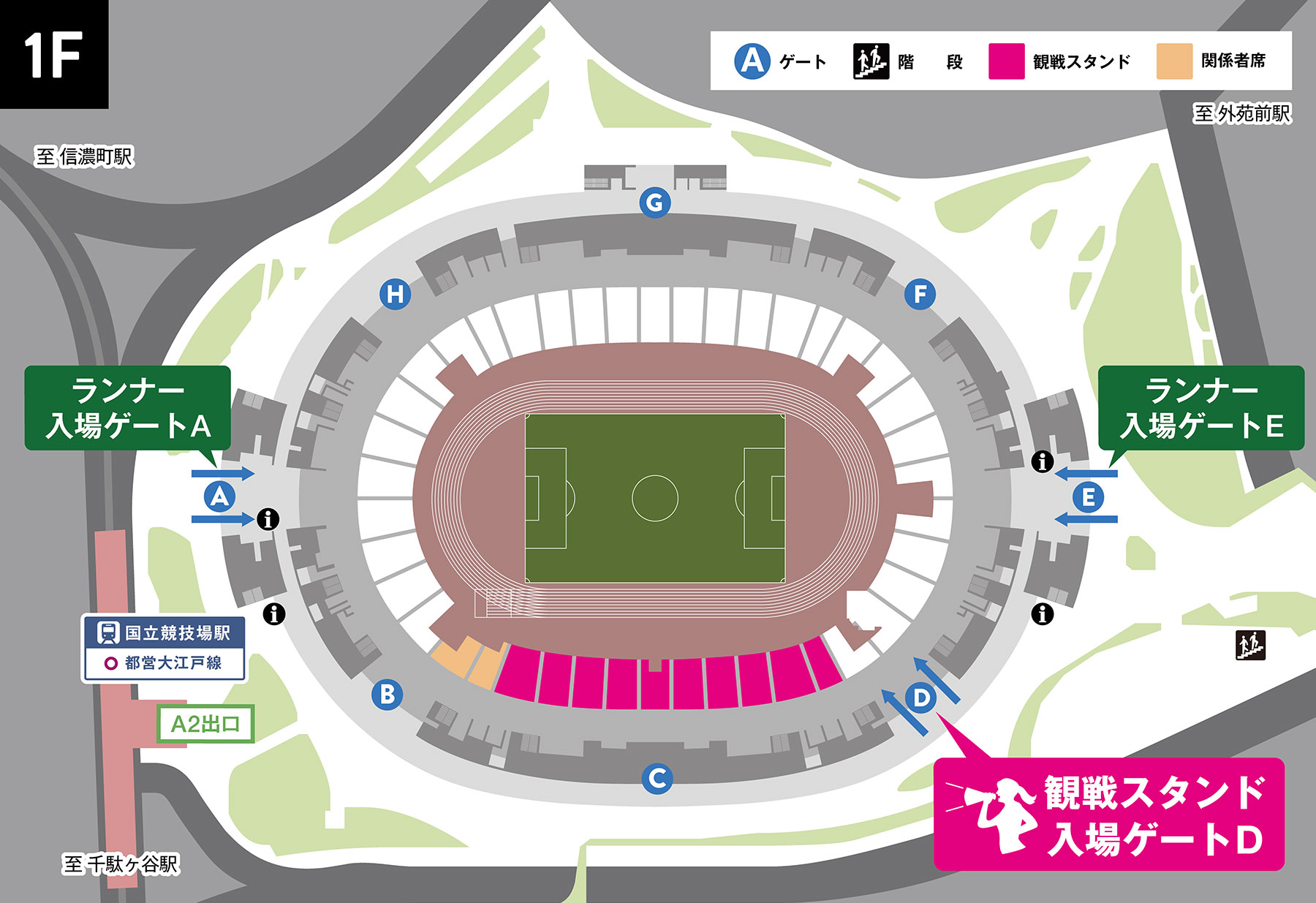 国立競技場内でご家族やご友人を応援する方は、1F「Dゲート」よりご入場ください。