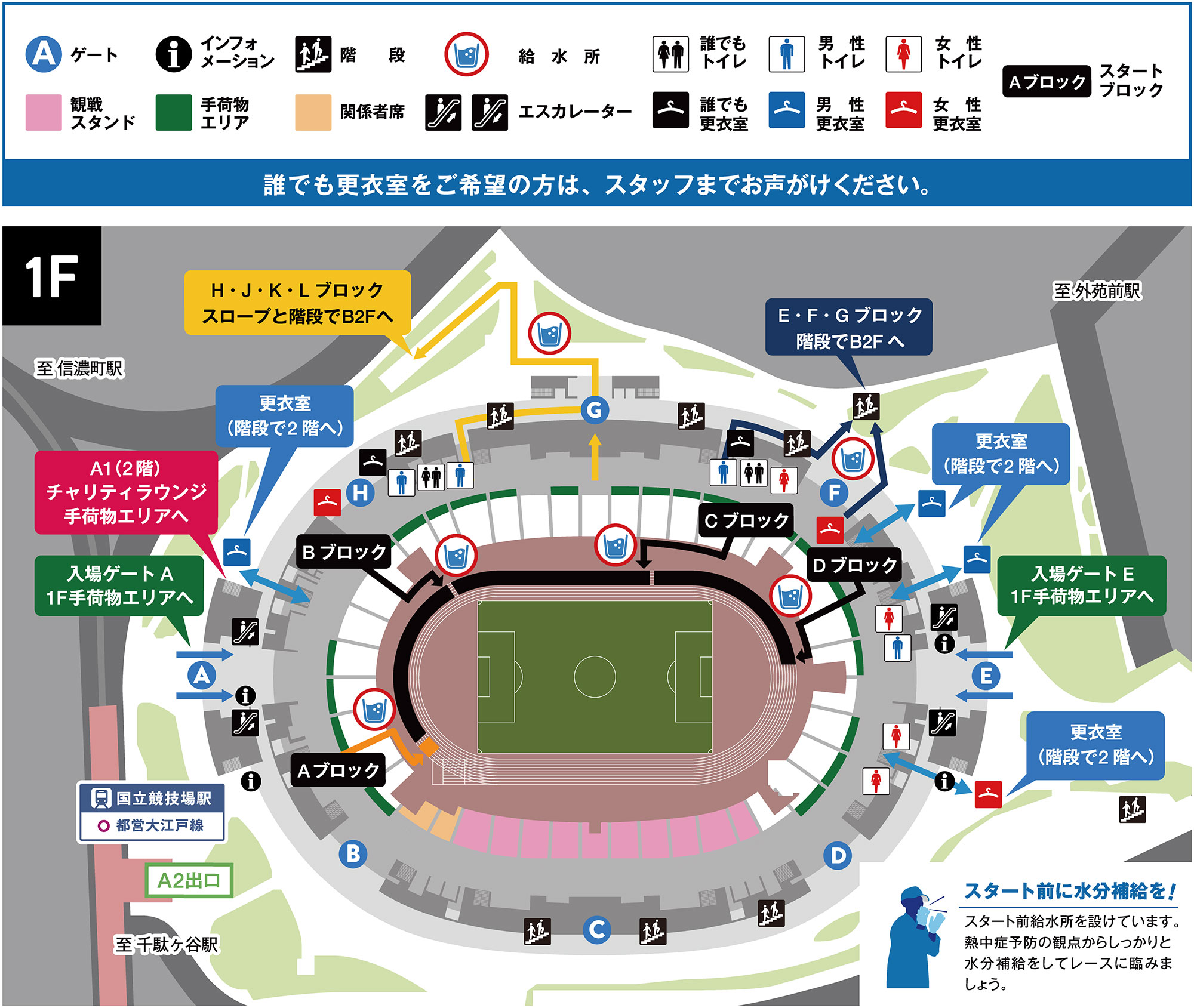 大会当日のトイレ設置位置についてお知らせします。 マナーを守ってのご利用にご協力をお願いいたします。 ■国立競技場 トイレ設置位置