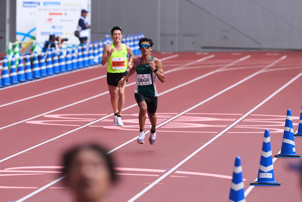 熊谷は今春、右ふくらはぎの肉離れで、約2カ月間、走れない時期があったそうですが、自己新を狙って果敢な走りを見せました。「自己新に届かず、悔しい部分はあるが、最後まで記録を狙ってがむしゃらに走れたので、結果には満足。少し暑かったが、肉離れの影響はほぼなかった。これからのマラソンシーズンに向け、調子を戻していきたい。」と、好感触を得た様子でした。