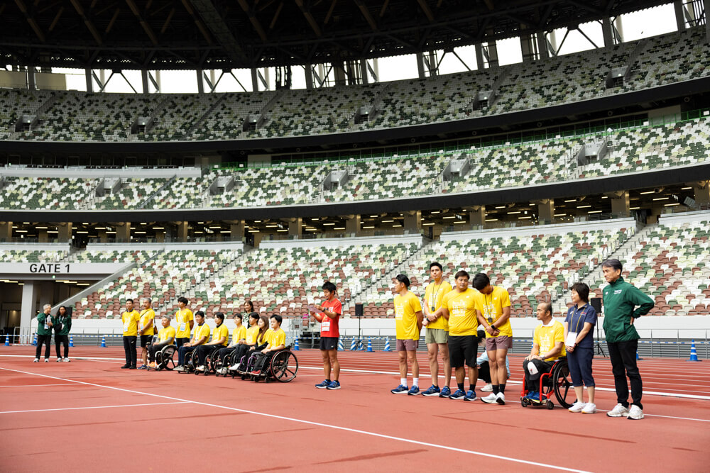 コーチ陣の中には、日本陸上競技選手権大会男子走り幅跳び入賞などの実績をもち、今季21年間の現役生活にピリオドを打ったばかりの小田大樹さんもいました。「初めて参加しましたが、参加者の笑顔が印象的でした。スポーツを、陸上を純粋に楽しんでいる姿に、僕自身が陸上を始めた小学校3年生の頃に重なって、とても有意義な時間になりました。国立競技場には選手として何度も立ちましたが、また別の形でこの聖地に関われるのは嬉しい。これまでの競技経験を活かせていけたら」と、手応えを語りました。