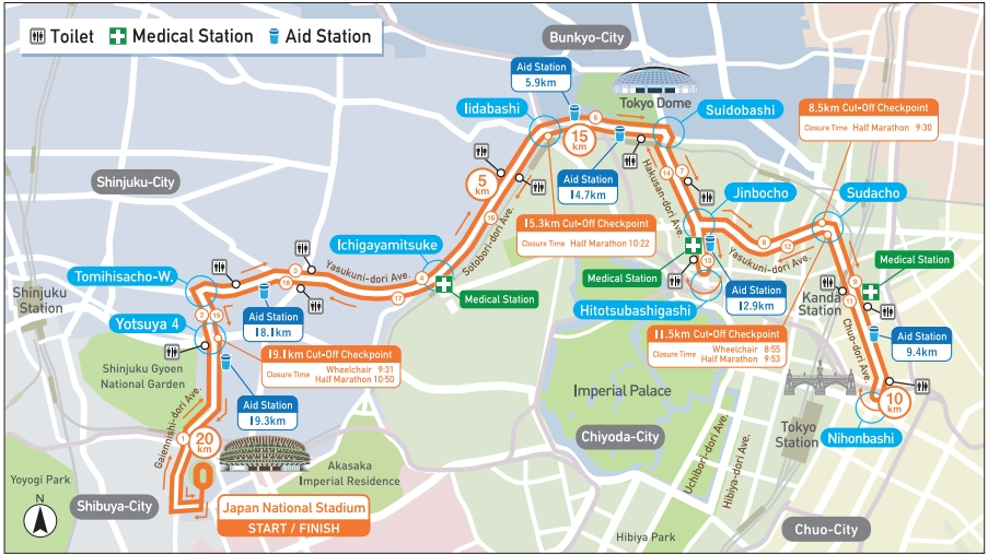 We would like to inform you about the toilet facilities on the course for the race day. We kindly ask for your cooperation in using them with proper etiquette. Defecating or urinating outside of a toilet is against Japanese law and is strictly punishable. Please refrain from any defecation activities other than in the designated toilets.