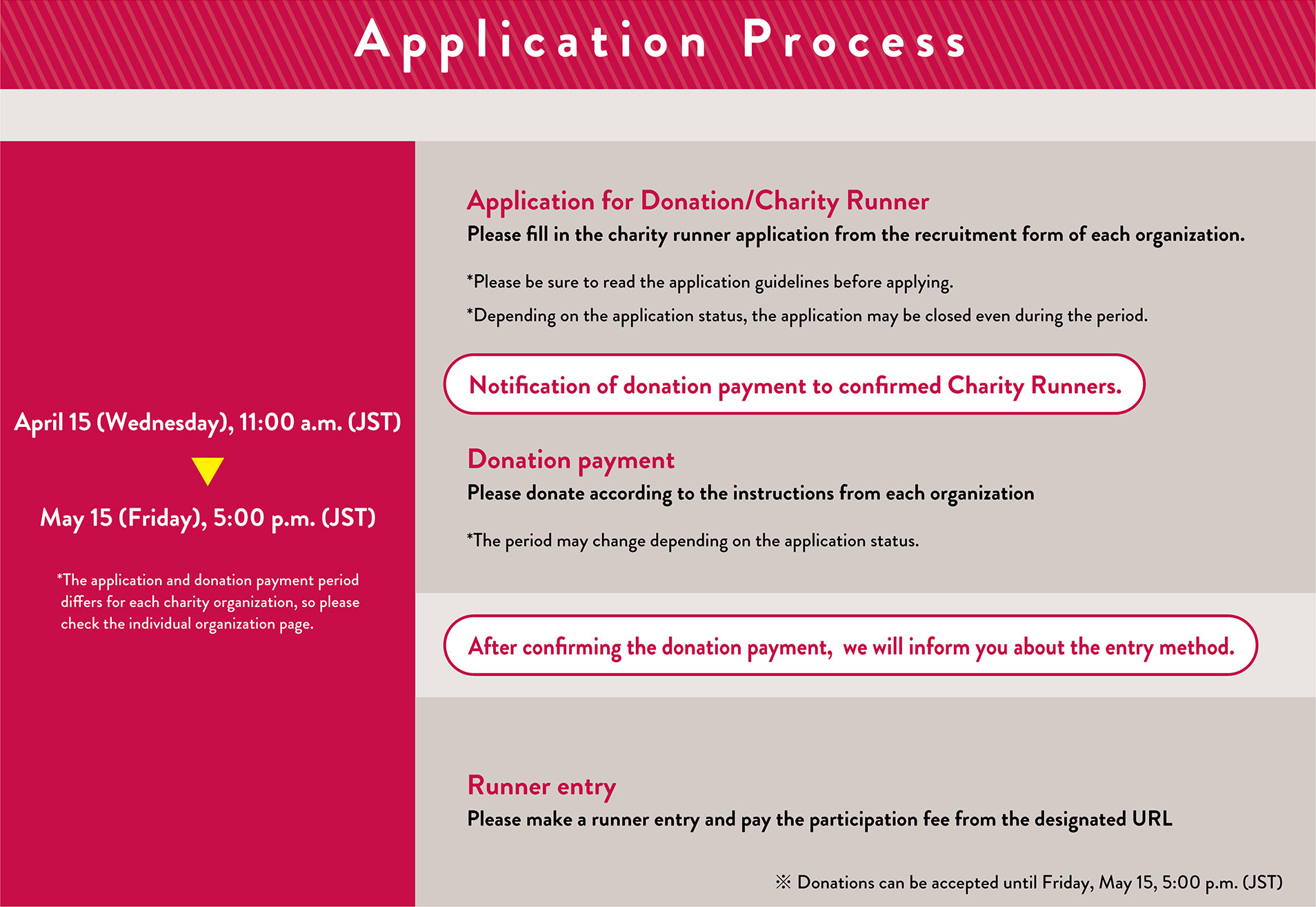 Please note that information on each recipient charity has already been updated for the current event, and applications can be submitted normally via the “Donate Now” button on the website.