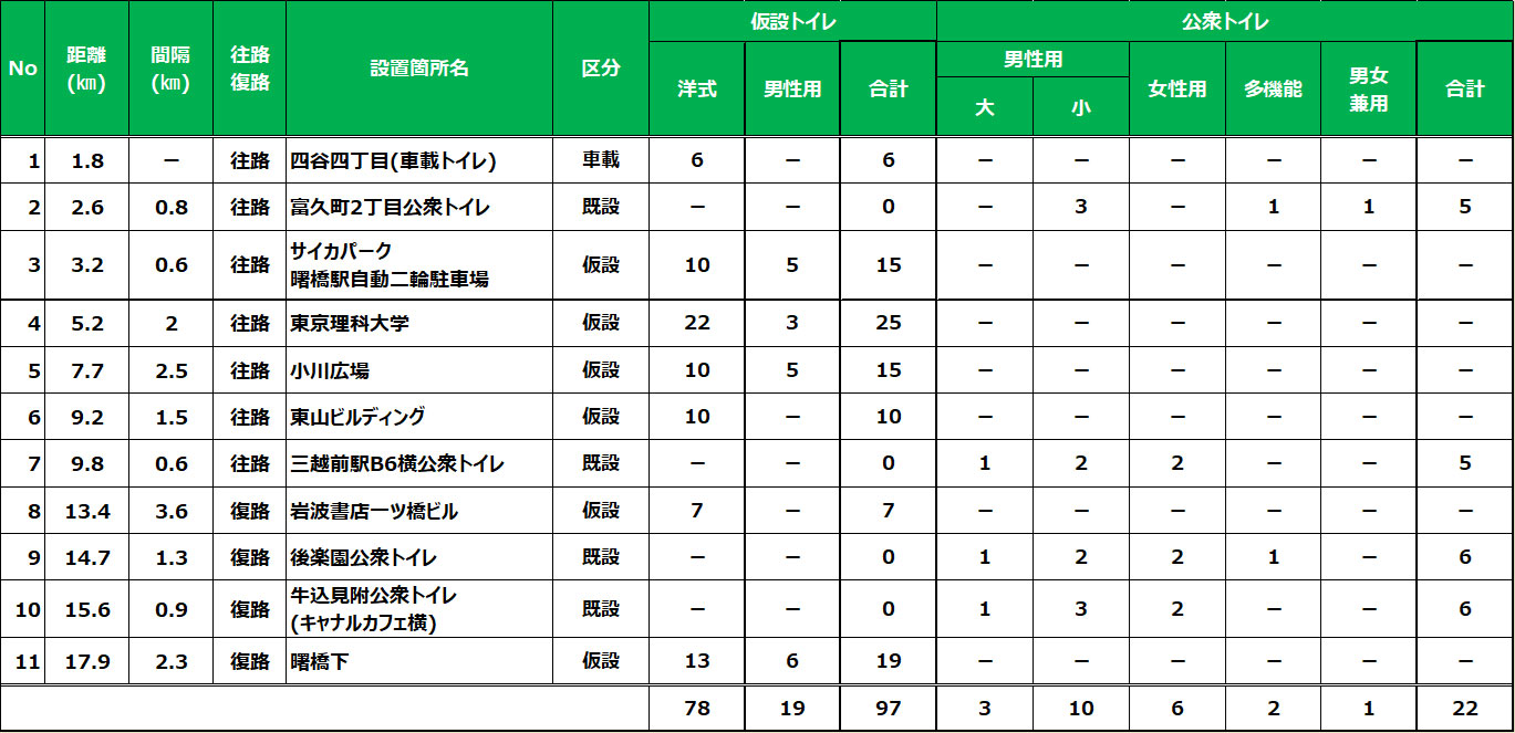 トップ > ニュース > <ランナーの皆さまへ>トイレ設置位置のご案内