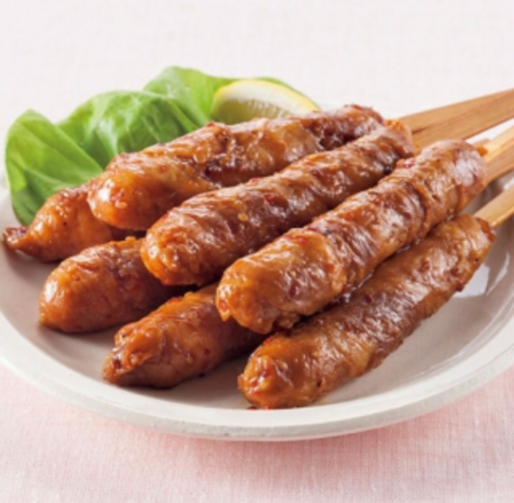 B級グルメの定番、肉巻きおにぎりはふっくらご飯に豚バラ肉を巻いておいしく焼き上げました。