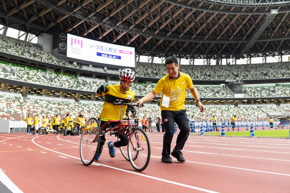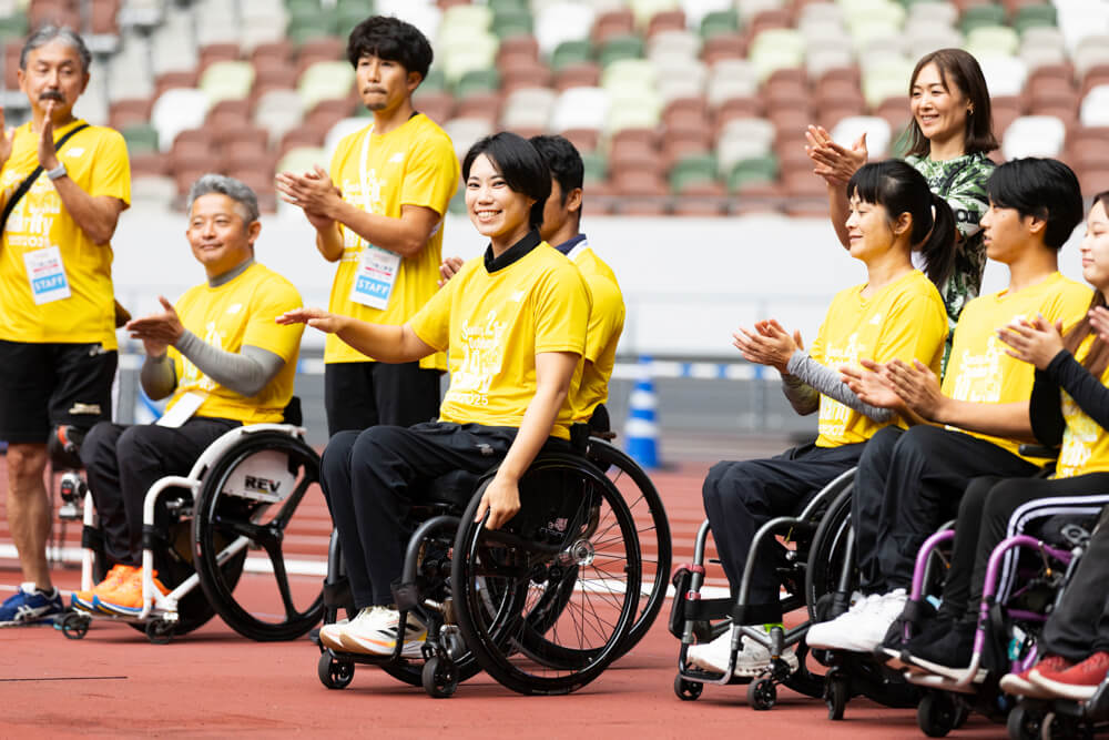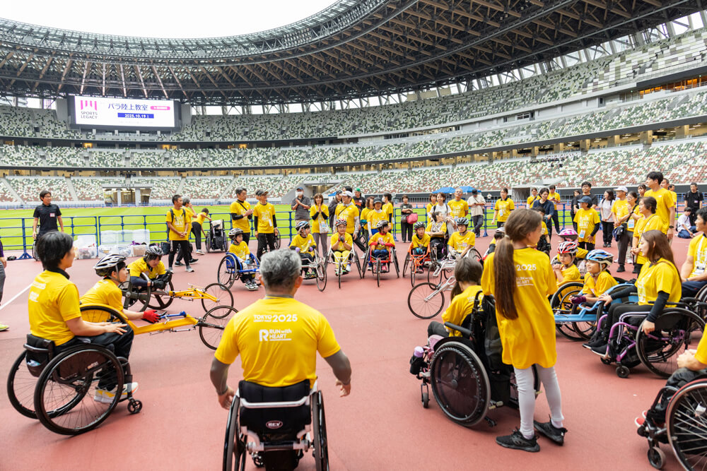 10月19日、東京レガシーハーフマラソン2025終了後の国立競技場で、「第4回パラ陸上教室 in 国立競技場」を開催しました。この教室は障がいをお持ちの方もスポーツの聖地・国立競技場のフィールドに立ち、アスリートが感じた興奮や感動を体験することで次の成長を育み、新たな夢を目指せる機会の提供をコンセプトに毎年開催し、年々人気を高めています。